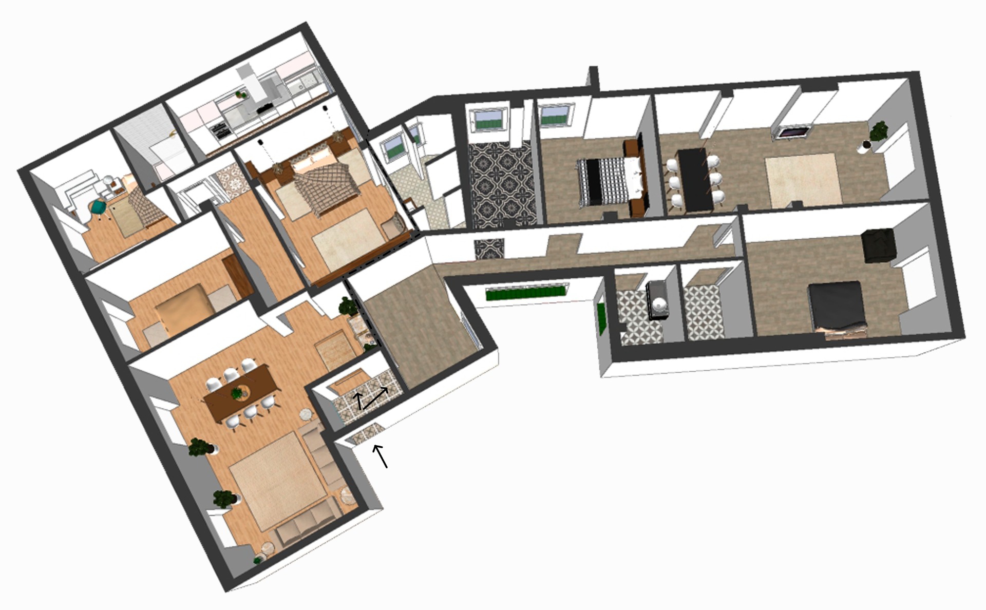 Infografía para reforma consistente en dividir una planta en 2 viviendas.